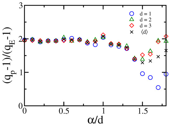 - Brito, S.; Nunes, T.C.; da Silva, L.R.; Tsallis, C. Scaling properties of d-dimensional complex networks. Phys. Rev. E 2019, 99, 012305. [Google Scholar] [CrossRef]