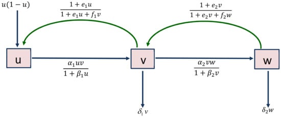 subject to the initial conditions . A conceptual diagram of model (4) is represented in Figure 1.