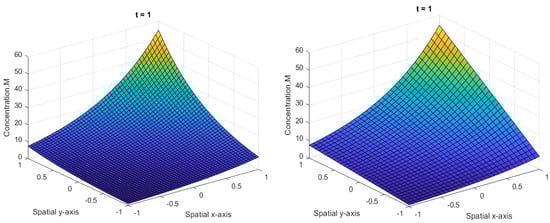 - Saleem, M.T.; Ali, I. Numerical Simulations of Turing Patterns in a Reaction- diffusion Model with the Chebyshev Spectral Method. Eur. Phys. J. Plus 2018, 133, 399. [Google Scholar] [CrossRef]