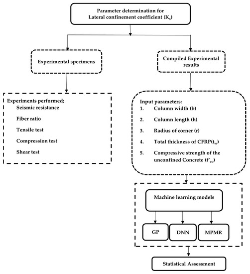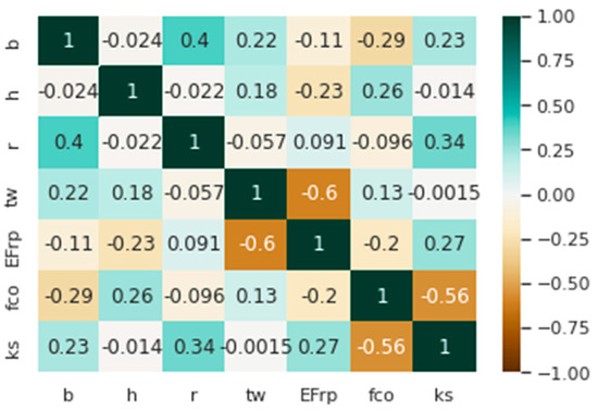 In order to determine the confinement coefficient of square and rectangular columns covered by CFRP fibers, a total of 293 datasets have been compiled from various works in the literature [1,11,59,60,61,62,63,64,65,66,67,68,69,70,71,72,73,74,75,76,77,78,79,80]. The following Table 3 conveys the statistical summary of the dataset.