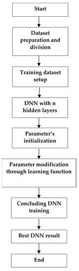 where is the weight of penalty; depicts the learning rate of the adopted DNN [88]. The upcoming Figure 9 shows the technical procedure of the adopted DNN model.
