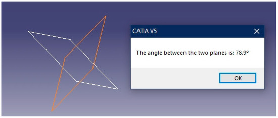 Once both planes are defined, and the option of the angle between two planes is selected, the geometric calculator returns the graphic result and the angle between them (Figure 20).