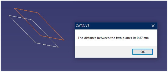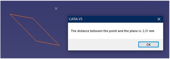 Lastly, the source code of the geometric calculator was modified so that it could also work with three-dimensional models designed in CATIA with the “Part Design” module. These models present the particularity of working with vertices, edges, and faces, instead of with points, lines, and planes, which were the elements utilized by the surfaces. To this end, the possibility of selecting these entities has been included in the source code of the geometric calculator.