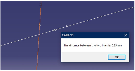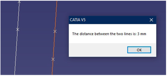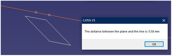 Obviously, the two elements must be parallel to each other. To this end, by reusing the geometric elements that are parallel to each other, previously created in Section 3.2, the distance between the line and the plane can be measured: