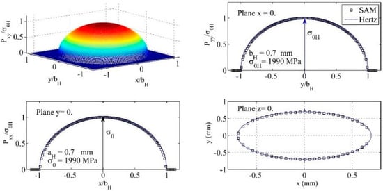 The pressure distributions resulted at normal loading of two identical smooth steel spheres: SAM results versus Hertz results .