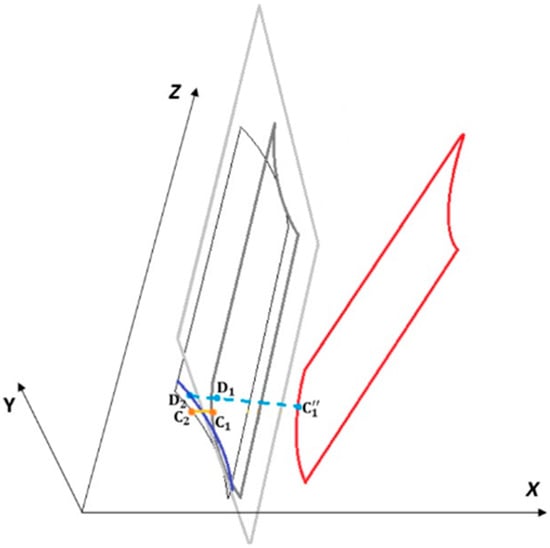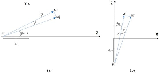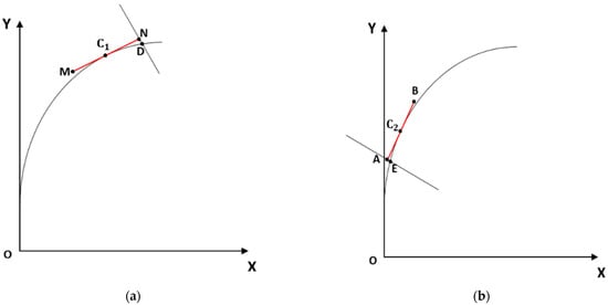 The same procedure can be used to calculate the separation between the tangent segment at the homologous point of , which is (Figure 5b). As long as is the homologous point with respect to , the homologous separation of is the distance between and E—.