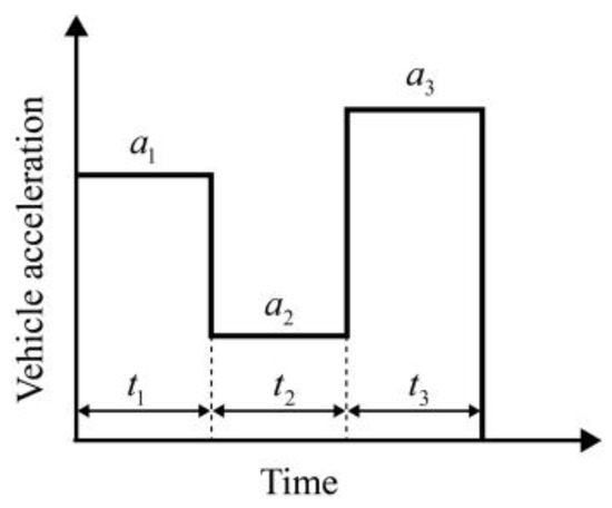 The parameters defining a concave pulse in the time domain are shown in Figure 7, where a1, a2, and a3 are the heights of the three-stage concave pulse; and t1, t2, and t3 are the widths of the three-stage concave pulse, respectively. According to the physical significance of the crash pulse and the characteristics of the concave pulse, the parameters of a concave pulse should meet the following requirements: