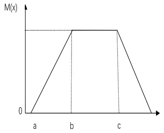 In particular, if , the trapezoidal fuzzy number M degenerates to a triangular fuzzy number, and if , the trapezoidal fuzzy number M degenerates to a real number. The membership function combines every U in the domain U with A number in the interval [0, 1]. is called the membership degree, which represents the qualification of U in A, that is, the membership degree of elements to fuzzy sets. When is closer to 1, the degree of U belonging to A is higher. The fuzzy combination is reduced to the classical regular set.