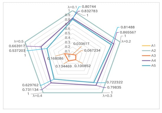 It can be seen from Table 12 and Figure 5 that the sequence of schemes did not change in the five experiments, and their relative proximity changed slightly, indicating that parameter had no influence on the experimental results. When a disaster occurs, if it is not dealt with in time, it will cause serious damage to all aspects. Therefore, the ranking results should be affected by subjective factors as little as possible, which further shows that the method in this paper has strong stability in decision making.