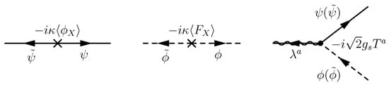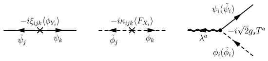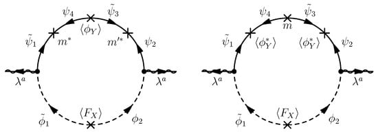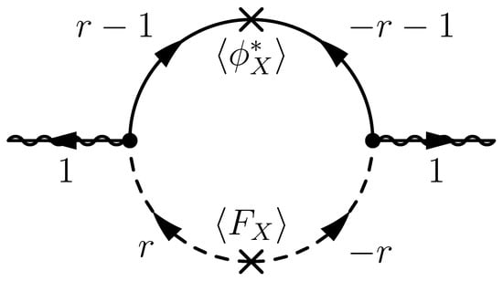 where the free parameters r, , and may be fixed by some mechanism in the ultraviolet theory, such as anomaly cancellation when the R-symmetry is gauged in supergravity. According to (22), the one-loop Feynman diagram shown in Figure 5 gives the magnitude of gaugino masses