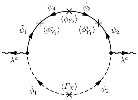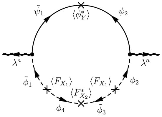 where the free parameters r, , and may be fixed by some mechanism in the ultraviolet theory. According to (22), the one-loop Feynman diagram shown in Figure 7 gives the magnitude of gaugino masses
