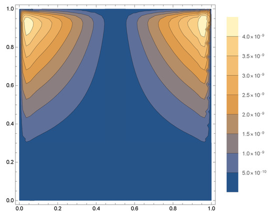 A contour graph of absolute errors of Example 2.