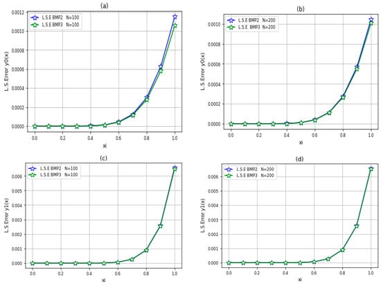 (a) Least square error comparation of BMP2 and BMP3 for . (b) Least square error comparation of BMP2 and BMP3 for (c) Least square error comparation of BMP2 and BMP3 for . (d) Least square error comparation of BMP2 and BMP3 for .