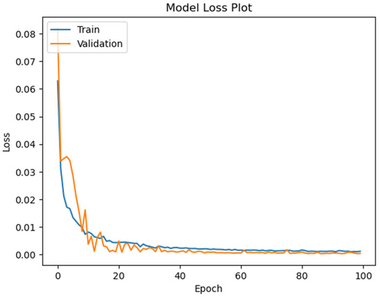 where stands for the output’s weight of neurons, for output gate biases, and for the output gate at time [50]. By using the product of outcomes of the forget gate and the cell state at the previous time step plus the product of input gate output and the candidate value , the cell state is updated. The cell state update can be made to the state of the cell using the following equation: