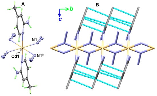 - Mautner, F.A.; Fischer, R.C.; Reichmann, K.; Gullett, E.; Ashkar, K.; Massoud, S.S. Synthesis and characterization of 1D and 2D cadmium(II)-2,2′-bipyridine-N,N′-dioxide coordination polymers bridged by pseudohalides. J. Mol. Struct. 2019, 1175, 797–803. [Google Scholar] [CrossRef]