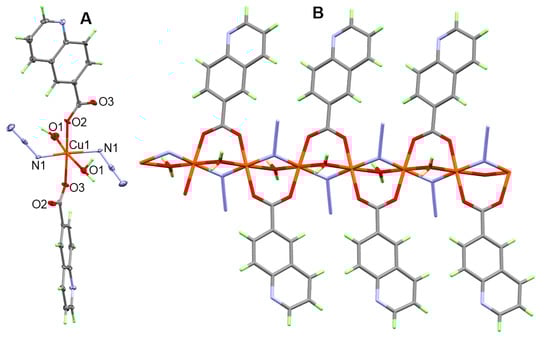 2.2. Synthesis of [Cu(Qu-6-COO)(N3)(H2O)]n; (2)