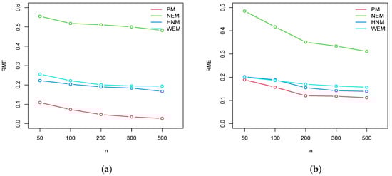 Table 3 provide the relative biases (RBs) and the relative mean square errors (RMEs). We made the following observations based on these results.