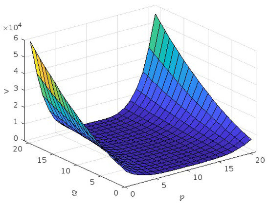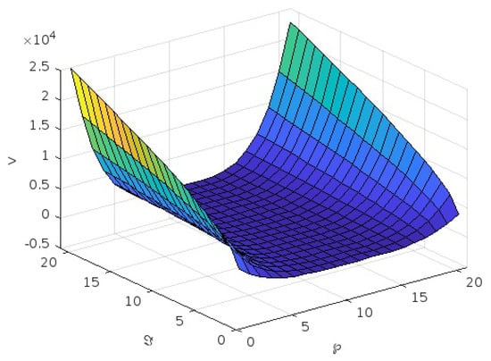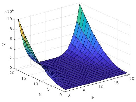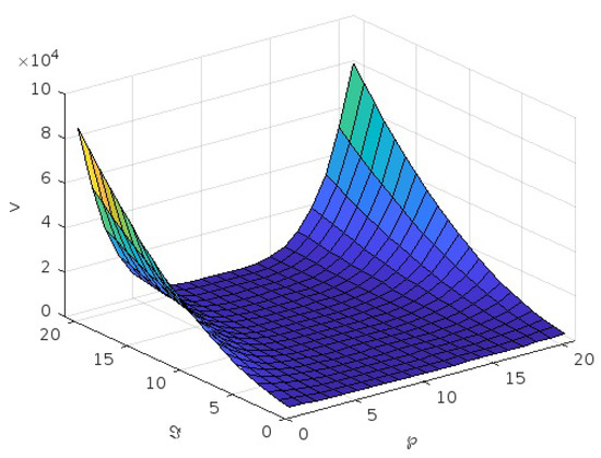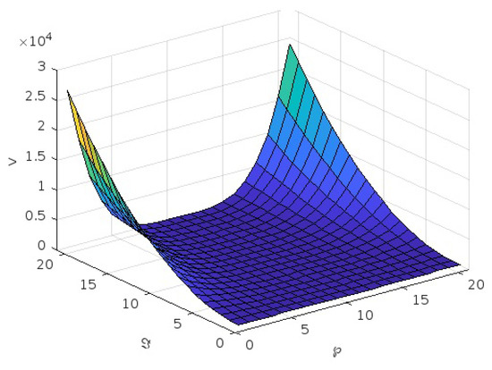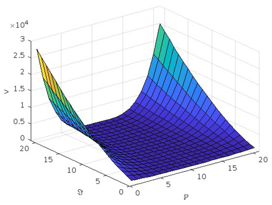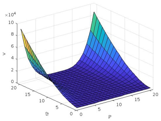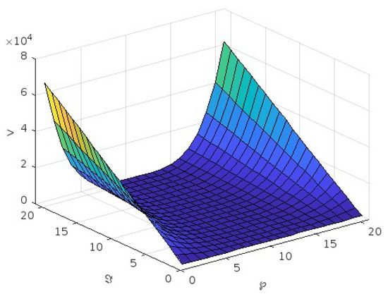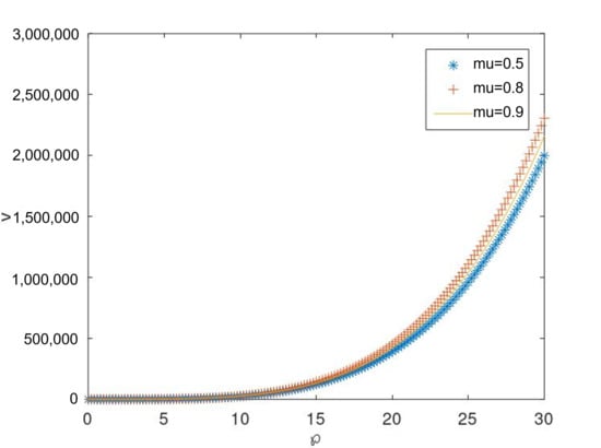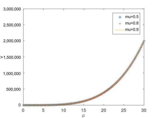 Graph of v for case II, with respect to ℘ for different values of , respectively, at a = 0.5, c = 1, .