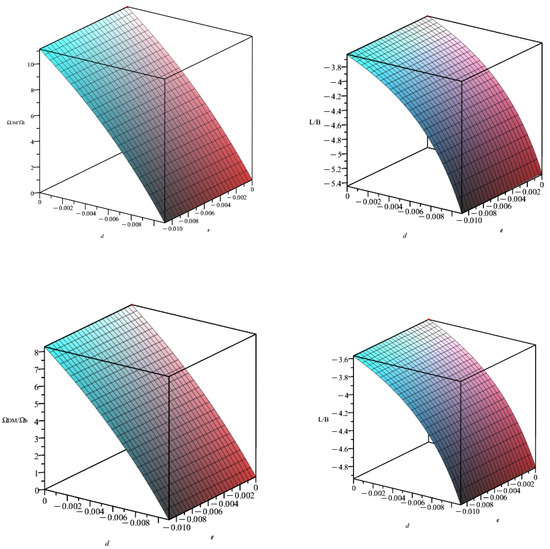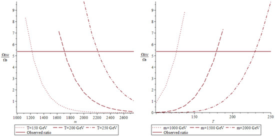 Equations (15) and (17) allow finding the ratio in the equal masses approximation, . This ratio is plotted in Figure 1 for and in Figure 2 for . It is also possible to find the values of model parameters to explain the observable ratio in both cases.