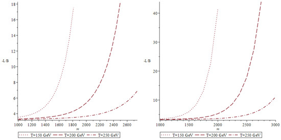 Among all the possible combinations, the most notable one is the lepton to baryon number density ratio . It grows like , with an increase of the fourth generation’s mass or a decrease of the freezing out temperature of the sphaleron transition (see Figure 3). To be more precise, this means that the masses of new fermions should not be too heavy due to standard anti-lepton danger of overproduction.