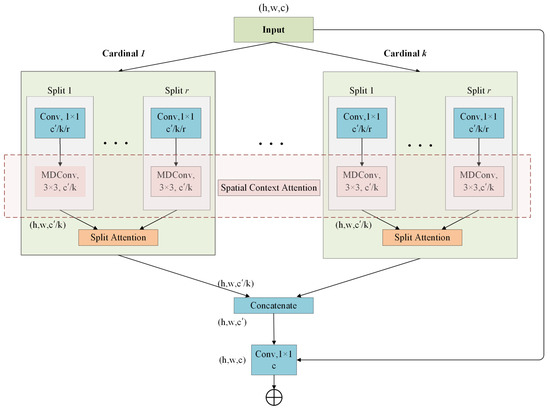 - Zhang, H.; Wu, C.R.; Zhang, Z.Y.; Zhu, Y.; Lin, H.B.; Zhang, Z.; Sun, Y.; He, T.; Mueller, J.; Manmatha, R.; et al. Resnest: Split-attention networks. In Proceedings of the IEEE/CVF Conference on Computer Vision and Pattern Recognition, New Orleans, LA, USA, 18–24 June 2022; pp. 2736–2746. [Google Scholar]