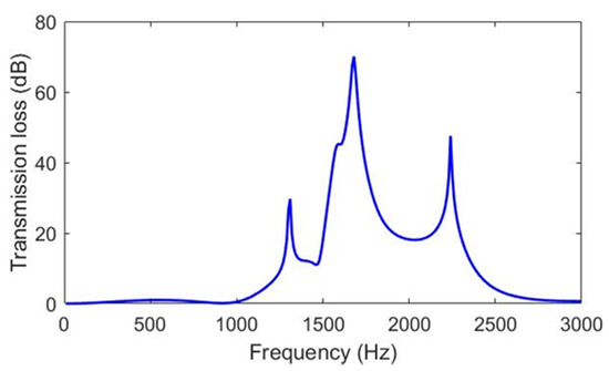 Transmission loss graph of a silencer with a labyrinthine-type resonator metamaterial.
