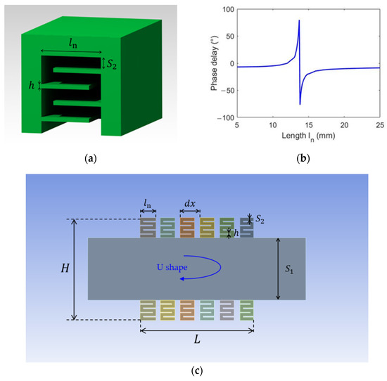 A phase delay must be determined to design metasurfaces that refract the direction of the travel of sound waves to reduce noise. For quarter-wave resonators, a metasurface model defines the phase delay according to length. Studies designing metasurfaces as quarter-wave resonators have derived phase delays using mathematical models [28], but in some cases, the details of the phase delays have not been specified [20]. In addition, for complex structures such as labyrinthine and hook-type resonators, detailed information on the phase delay is not provided [29], or the phase delay is calculated by estimating the propagation direction of the sound wave, which can be ambiguous. Ghaffarivardavagh et al. [30] estimated the transmission path of sound in the diagonal direction by equating the labyrinthine structure to that of a quarter-wave or horn-type resonator. The method for estimating the propagation direction of the sound wave may struggle to accurately calculate the phase delay because each designer may have a different definition of the sound paths.