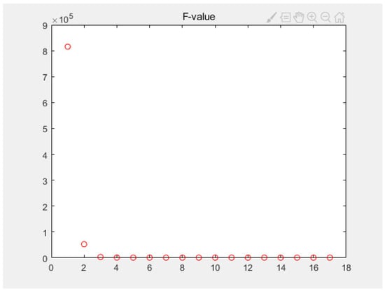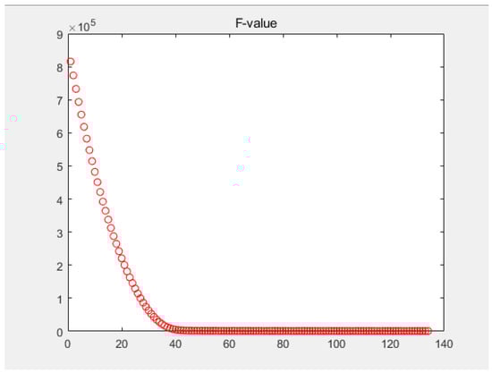 The iterative process for Algorithm 1 for solving this example is reported in Table 1 For comparison, the classical Levenberg–Marquardt method with simply is also applied to solve this example, and the iterative process is shown in Table 2. Obviously, Algorithm 1 has a higher convergence speed than the classical method with simply . Figure 1 and Figure 2 show the decreasing process of F value when solving this problem by Algorithm 1 and the classical Levenberg–Marquardt method, respectively.