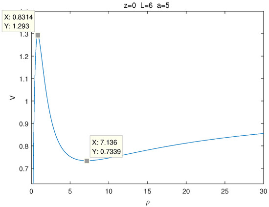 We obtain an image of the effective potential in this case, in which z = 0, L = 6, a = 5.