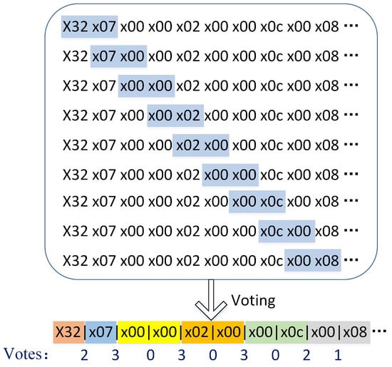 Each iteration of BVE generates a candidate split, until the voting threshold is reduced to a minimum value. Finally, the boundaries of the protocol fields are jointly selected by three voting experts, as shown in Figure 3. After BVE processing, we get the protocol’s feature sequence, X = (, ,…, ), which becomes the input of the protocol Format and Semantic Inference model.