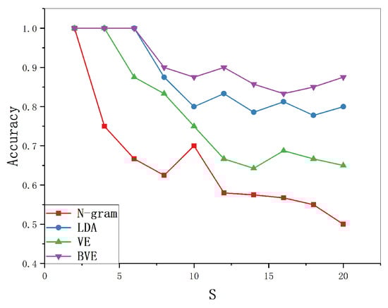 After determining the parameter settings of the BVE algorithm, we compared the performance to several representative unsupervised feature extraction methods. We chose traditional VE [18], latent Dirichlet distribution (LDA) model [28], and n-gram model [29] as analogy items. The two-sample Kolmogorov–Smirnov test (KS test) [30], an efficient and general nonparametric method for comparing two samples, was performed on these four feature extraction methods.