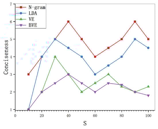 - Conciseness of feature extraction: we counted the ratio of the number of extracted top s feature words to the number of all key fields of the corresponding protocol. An overly conservative segmentation strategy produced redundant protocol features; a lower ratio, therefore, reduced redundancy in the protocol format.