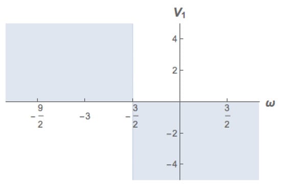 The above constraints not only guarantee a great simplification of Equation (18), but they are also very reasonable. Indeed, Equation (22) is consistent with a radiation-filled Universe—described by the equation of state . By abiding by Equation (22), we assumed that the dynamics of the field takes place in this era.