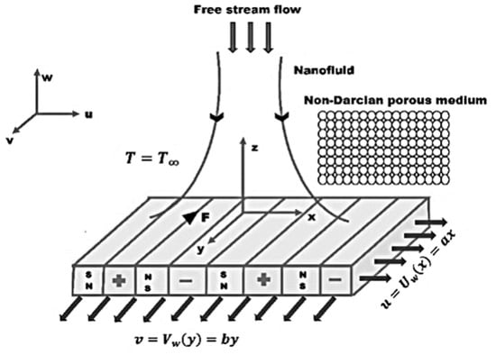 - Nadeem, S.; Haq, R.U.; Akbar, N.S.; Khan, Z.H. MHD three-dimensional Casson fluid flow past a porous linearly stretching sheet. Alex. Eng. J. 2013, 52, 577682. [Google Scholar] [CrossRef]