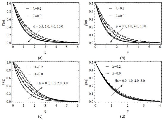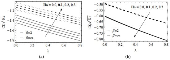 - The skin friction rate in direction enhances and in direction decays when enhancing the modified Hartman number.