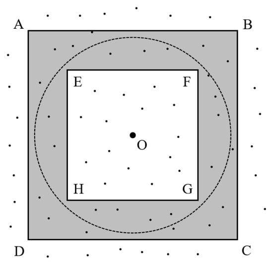 where and are the approximate external and internal tangent square edge lengths of the candidate circle O, respectively, is the error-tolerant distance retained by the external internal tangent square different from the standard, and is the square verification region of the candidate circle.