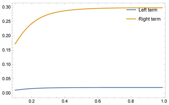 Graphical behaviour of Theorem 5 for and .