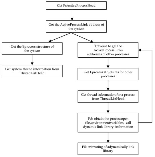 - To obtain information about the processes, “PsActiveProcessHead” and “ActiveProcessLinks” are used to identify the system processes; thus, a two-way linked list can be traversed, and all activities of the process can be enumerated.