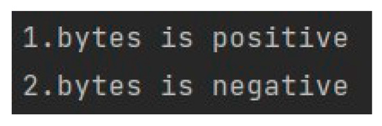 We will dump the virtual machine that ran the sample and then extract a single cmd.exe file named 2.bytes. Using the model we trained and saved, we detect that 1. bytes files are benign and 2. bytes files are malicious. The file we dumped is shown in Figure 13, and Figure 14 is the result of the model output after our detection. Therefore, this type of attack cannot be detected in static files, and this malicious code can only be detected in dynamic analysis.