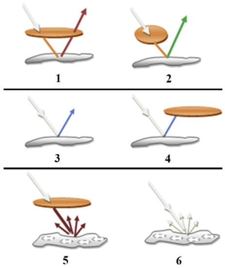 The cuttlefish algorithm (CFA) was proposed in [24] as a bio-inspired optimization algorithm that mimics the color-changing behavior of a marine animal called cuttlefish. Compared to other bio-inspired metaheuristic algorithms, such as the GA and bees algorithm, the CFA algorithm has shown its effectiveness in solving optimization problems [25]. Reflection and visibility are two important processes responsible for changing cuttlefish color. In the reflection process, the CFA simulates the light-reflection mechanism using chromatophores, iridophores, and leucophore skin layers, and the visibility process simulated the visibility of the matching patterns of the cuttlefish. Figure 1a,b show examples of how the CFA layers are stacked and combined together to change reflective color. Overall, six cases were included in the CFA, as shown in Figure 2.