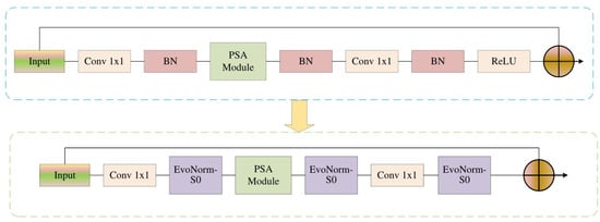 22] proposed a lightweight and effective attention method called the pyramid extrusion attention (PSA) module; by replacing the 3 × 3 convolution in the ResNet bottleneck block with the PSA module, a new representation block was obtained, called EPSA.