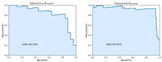 Table 2 compares the parameters of the improved model presented in this study with those of YOLOv4, and YOLOv4-tiny—the lightweight model from YOLOv4.