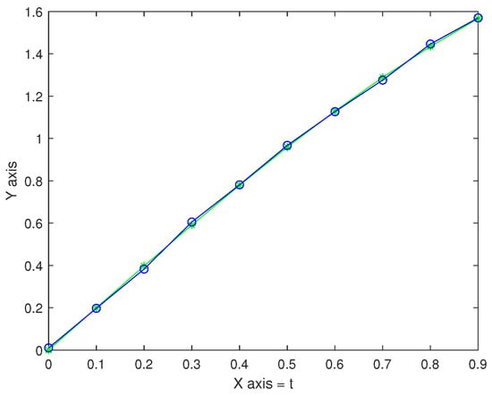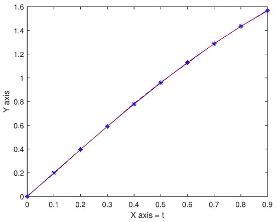 From (22) with exact solution , for . Table 1 shows the numerical value.