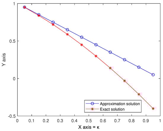Table 2 shows that the error between the approximation and exact solution is also relatively small, and Figure 3 shows the comparison of approximation and exact solution with h = 0.1.