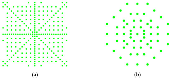 Sampling distribution pattern: (a) symmetrical uniform distribution; (b) symmetrical circumferential distribution.
