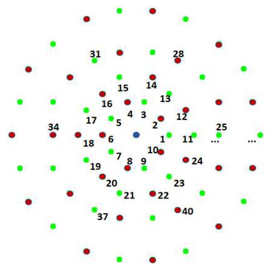 - First, all the points except the centre point are given a serial number and divided into odd and even points, as shown in Figure 5.