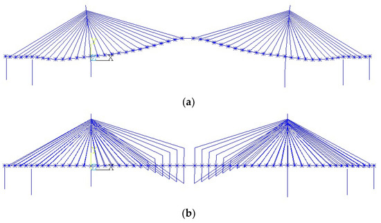 - Ruiheng, W. Study on the Stability of the Tower of a Single-Column Cable-Stayed Bridge with Variable Sections. Master’s Thesis, Chongqing University, Chongqing, China, 2019. [Google Scholar]