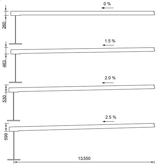 The different deck slope rates of a π−type composite beam (unit: 10−3 m).
