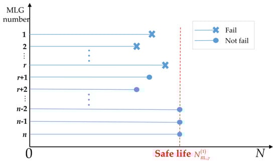 Secondly, denote = {r MLGs fail with logarithmic life of , and n − r MLGs do not fail with logarithmic life of }. Then, the probability that events A and B occur simultaneously and the probability that events and B occur simultaneously can be calculated as