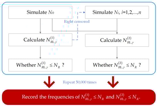 For Simulations No. 1–No. 6, the coverage probabilities for safe life determination and for safe life extension are summarized in Table 3. The results indicated that both and were extremely close to under all simulation situations, which verified the correctness of Equations (24) and (25).